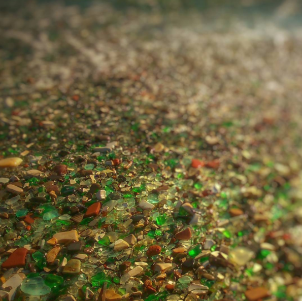從此,這片海灘佈滿了色彩繽紛的寶石,在陽光照射下,閃閃發光的景象,已經讓人無法跟以前髒亂的垃圾場有任何相關聯想。比起什麼白色沙灘、粉紅色沙灘,是不是美得有過之而無不及?
