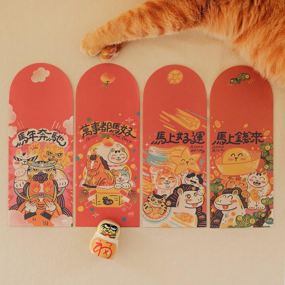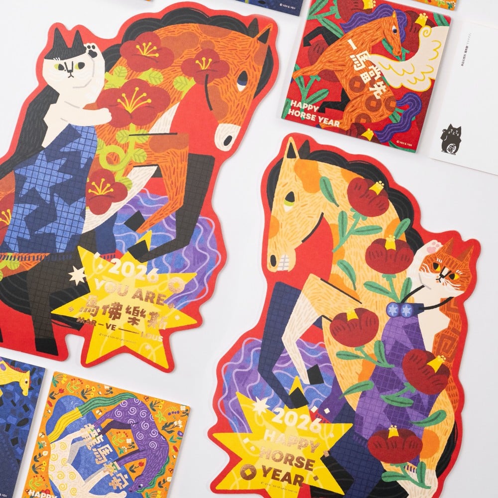 貓奴們快看過來!在「第13生肖」專區之中,包含三島桃子、YEH & YEH、大芝麻小花生、皮康、wwiinngg 等設計師,都特別把將貓咪及「本命馬」給融合。這幾款跨界打造的紅包袋,不只療癒,更滿足貓奴們在任何生肖年都要「擁貓」的小確幸。