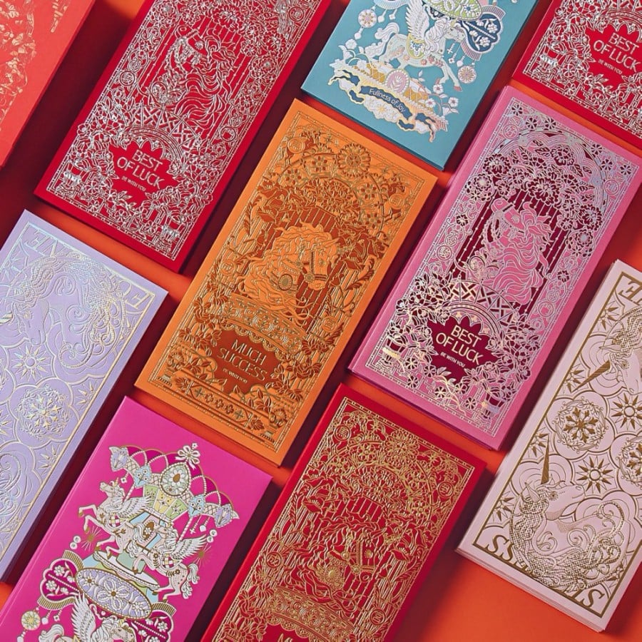 堪稱紅包界顏值天花板的燙金紅包袋,藉由精密打凸與層次燙印,讓金屬光澤不再只是點綴,而是展現精品質感的重要一環。包含 Vis Vitalis、United Collective Design、Fecina、Million ways 選物、Hsing Ling Design 等設計師品牌,都將用燙金列紅包演繹馬年的奢華風度,怎麼能錯過!
