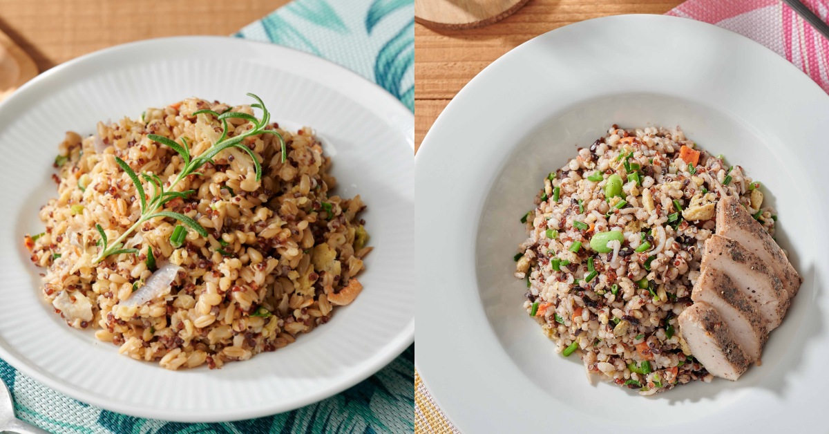 一頓營養均衡的餐點,除了蛋白質、蔬菜份量要足夠之外,健康的澱粉也不能忽略,七里香的經典「藜麥多穀飯」同樣也會在這份組合之中,而且一次就有4種口味,包括:蝦仁、櫻花蝦、吻仔魚、麻油雞口味,可以直接隔水加熱、微波或電鍋加熱,也可以煮成稀飯哦!