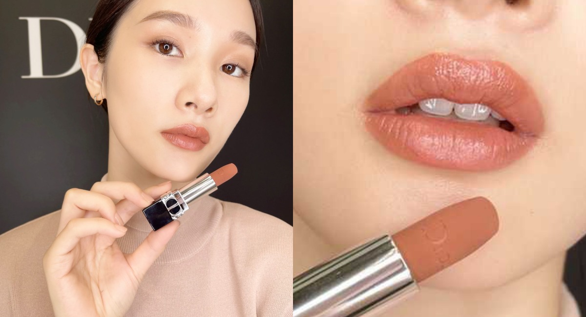 是百搭的蜜桃杏仁色,帶有紅色調超顯白,雙唇嫩得猶如舒芙蕾般,令人忍不住想親一口。