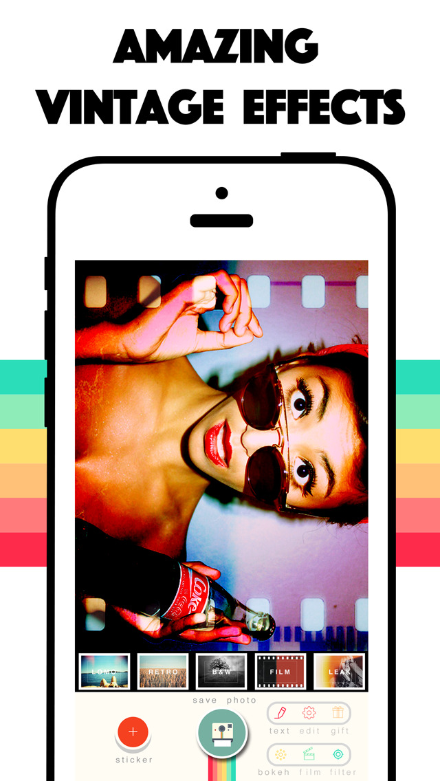 《Instax》有復古鏡頭、各種風格的濾鏡、高質感特效、以及很多款文字軟體,任君挑選,隨便玩都很美啊!
