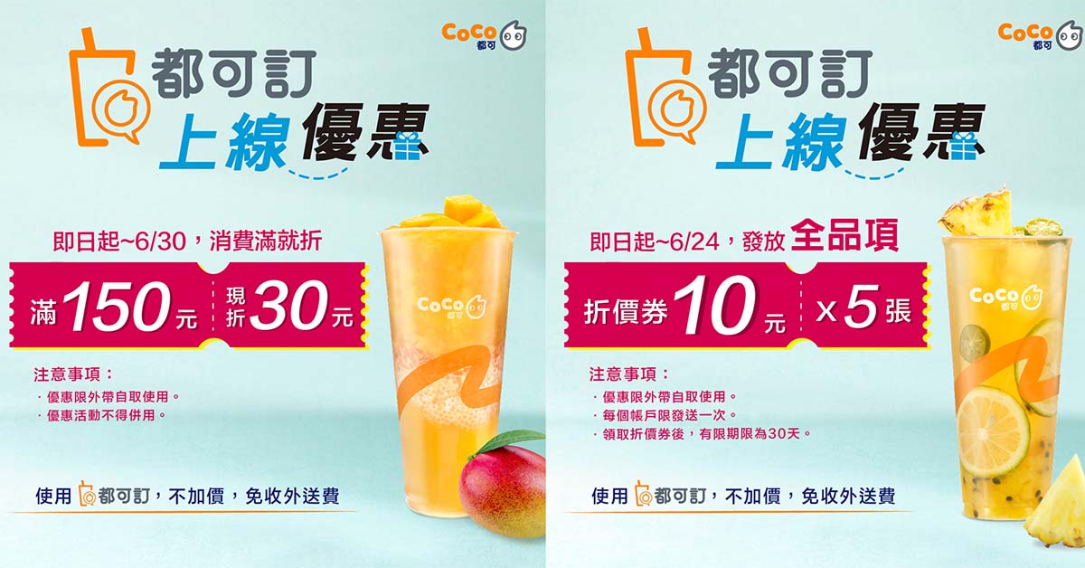 CoCo楊枝甘露回歸,讓你宅在家手機線上點單享折扣 CoCo、手搖、飲料