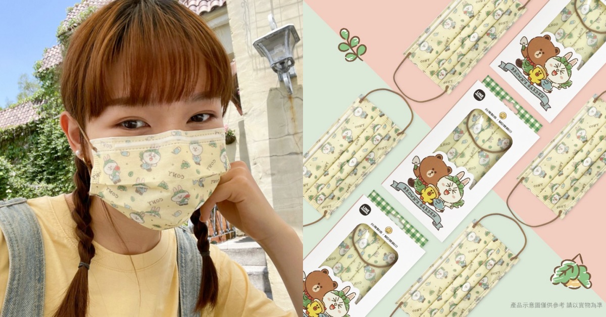 LINE FRIENDS田園樂口罩!熊大、兔兔化身俏皮萌園丁,清新色系盛夏最百搭