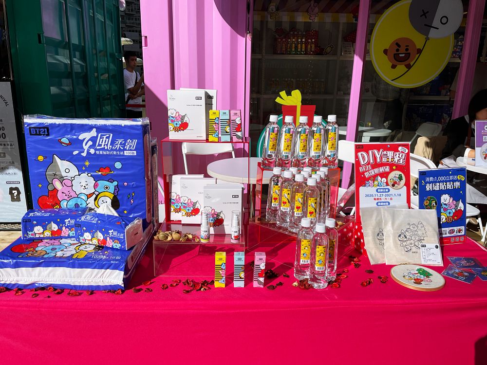 現場還有LINE FRIENDS、BT21手機殼、無線耳機充電盒保護套、車充等3C週邊,派對時光共邀請7個品牌,每個攤位推出的週邊都是限定聯名,粉絲必逛。