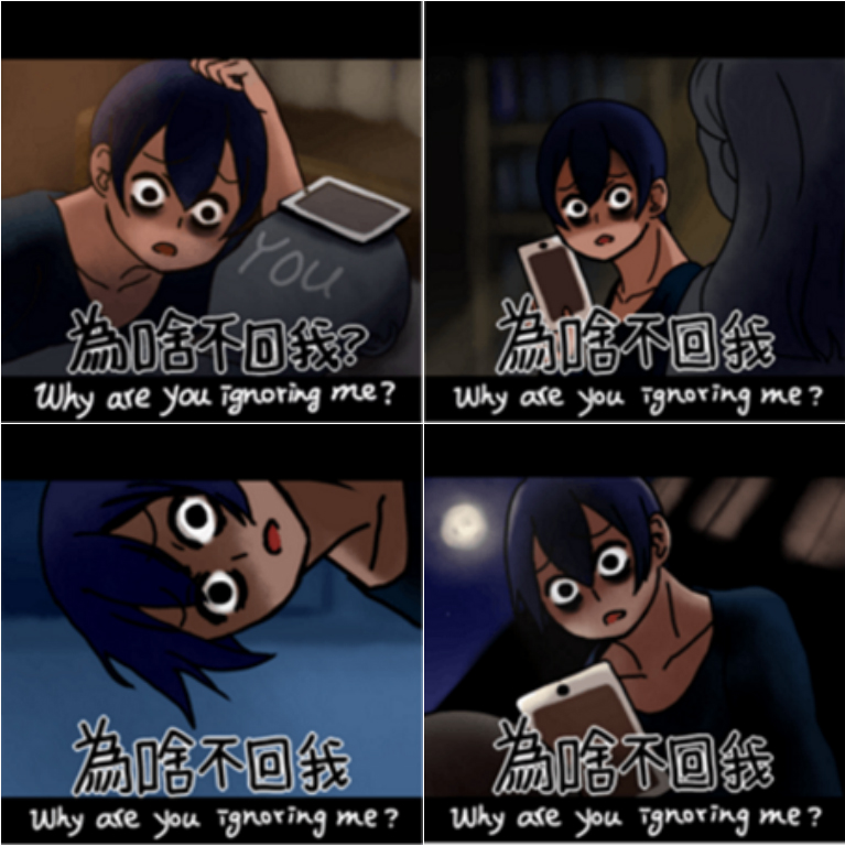 最後線上幾個靜止畫面,讓你深切的感受一下,沒有得到你的回應的憂鬱吧!相信不只是為啥,大家也感受到真是「煩炸了!」吧!所以,大家記得回朋友訊息,別再已讀不回啦!