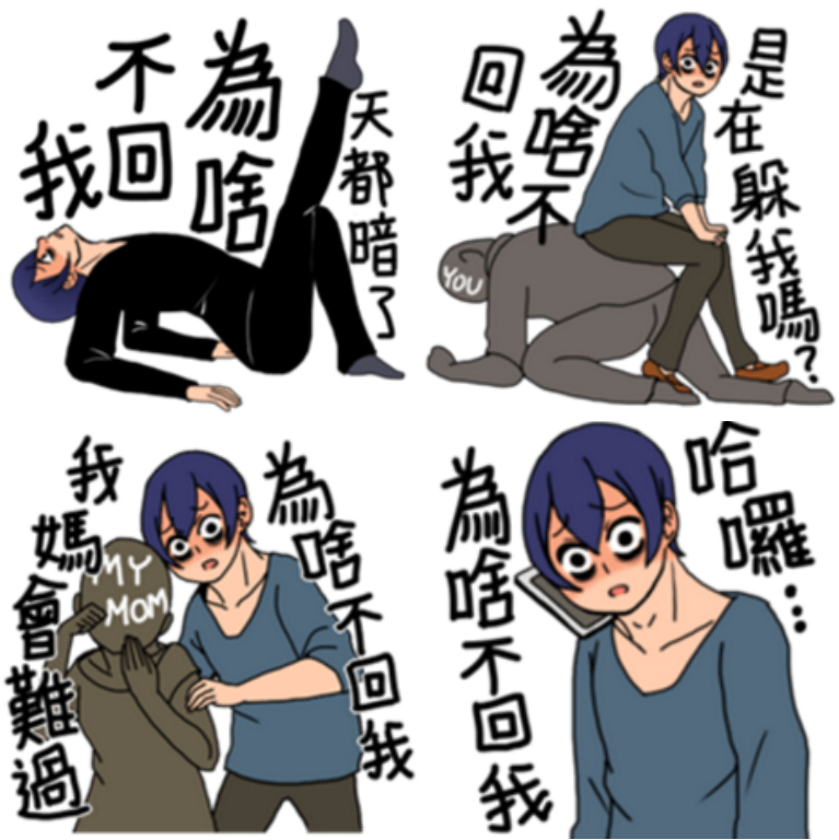 這款貼圖從頭到尾就是只有一句對白「為啥不回我」!