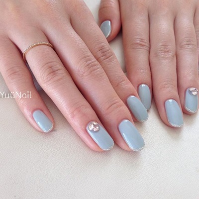 在指緣擦上寧靜藍做點綴的法式指甲適合氣質型女孩,好感度也會更加提升喔!