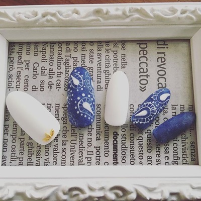 大理石紋在今年相當流行,指甲上一樣可以玩出大理石紋路的質感。這款指彩有種青花瓷般的恬淡優雅。