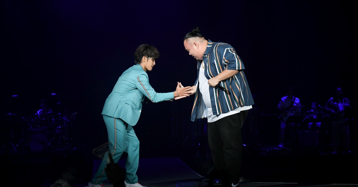 而這也是他以個人之姿第一次當演唱會嘉賓,鼓鼓也備感榮幸,直說自己很幸運不只有好多好朋友,連兄弟的兄弟都對他很好,一起加入「肥男幫」,兩人一連演唱〈Fly Out〉、〈肥男幫〉、〈幹大事〉,音樂一出,全場大聲唱和,情緒嗨到不行。最後大淵特別練習藍隊專屬手勢應援,在台上和鼓鼓「交手」,象徵著兩人從網友變朋友,鼓鼓也大膽地對大淵提出希望未來能在新專輯合作。