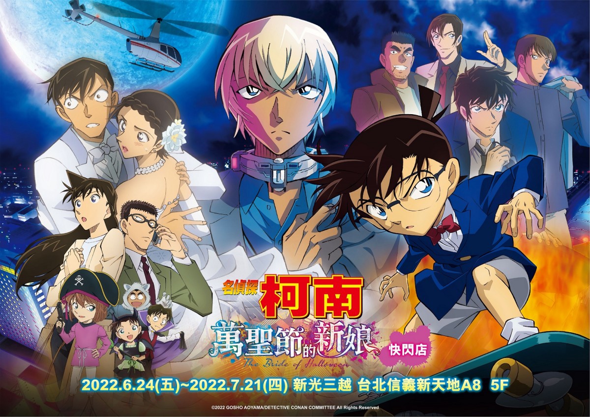《名偵探柯南:萬聖節的新娘》快閃店將在6月24日於新光三越台北信義新天地A8館5樓開幕,店舖以電影版主視覺為設計重點,劇場版以婚禮為故事中心,柯南、小哀、新一、小蘭及安室各角色們,更以婚禮造型全新亮相!