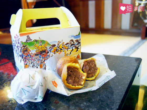 為了讓大家看看(明明就是自己想吃),我們現場買了一盒並且拆開來吃。外黃內紅的松露饅頭,小小一個大約硬幣大小,內餡是採用北海道產的紅豆,而外皮則是使用近似於蜂蜜蛋糕的製作材料製成。之所以命名為松露饅頭是因為其外型就像是高級的松露,而得名。