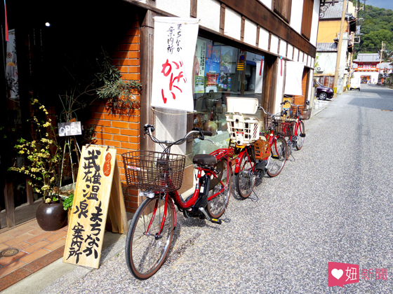 租借時間從上午九點到下午五點,費用是五百日圓(另外加一千元日幣當押金),在這個時間之內,想去哪裡就去哪裡,像是騎到附近的店舖去買名產等等。只是要特別注意,在哪裡租就要在哪裡還唷!