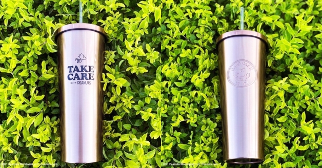 展覽獨家商品必買三「史努比TAKE CARE玫瑰金不鏽鋼飲料杯」,以「關愛地球」為主題,跟著史努比一起當環保小尖兵,杯身色調為玫瑰金,圖案則使用立體鋼印,附吸管!