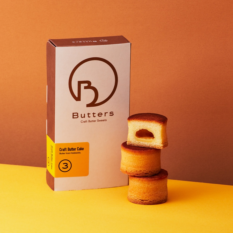 品牌主打的Craft Butter Cake(奶油蛋糕 經典原味),嚴選來自北海道的奶油,在奶油發酵後,除富含濃郁香氣外,更帶有著優格獨特的香氣!夾在甜點中央的經典牛奶醬,使用製造奶油時所產生的脫脂奶粉、鮮奶油細細熬煮,脂肪含量低,但奶香依舊香醇。糕體表面則以法式鐵板壓製烘烤,藉由因水分無法散失所產生的空洞,反而更能品嚐到濃醇的北海道發酵奶油和濃郁滋味的牛奶醬。