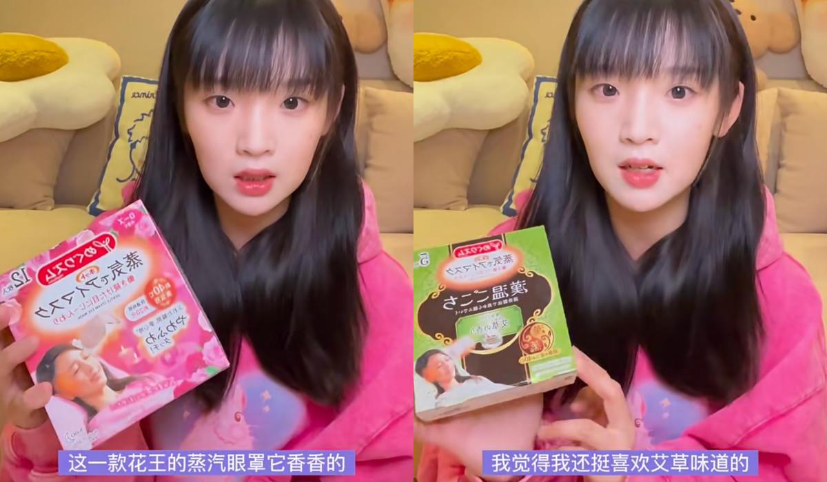 每到日本一定會大掃貨的花王蒸氣眼罩,戴上去會自動有溫熱感,聞起來還香香的!張淼怡私底下也超愛這款眼罩,戴上去不容易滑脫,她最喜歡玫瑰味、柚子味,之前新推出的艾草味也很得她心。