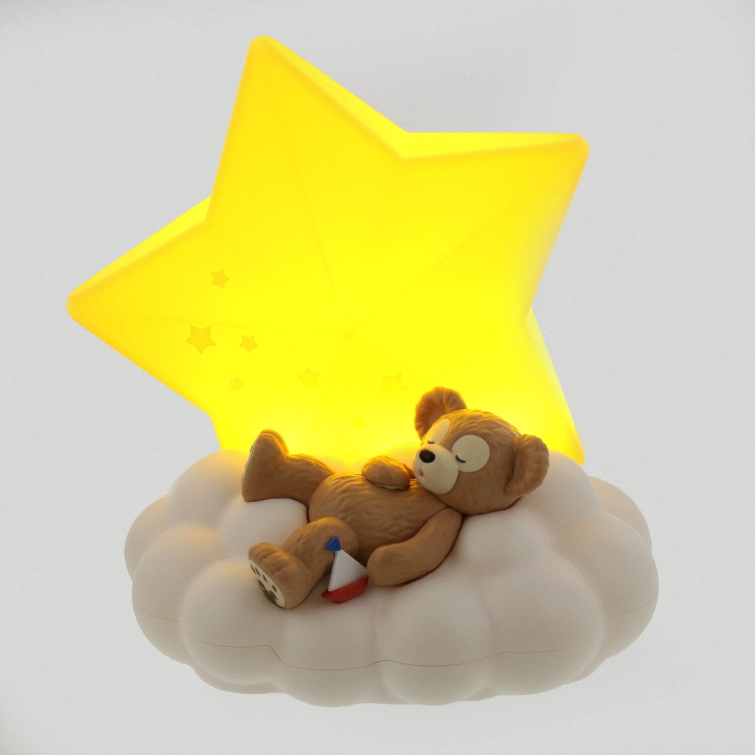 作為房間裡最佳擺設的地墊和夜燈,也悄悄現身啦~地墊上的圖樣呈現了達菲捧著臉頰的可愛姿態,一臉就是要人把它帶回家的樣子(笑)夜燈則是以躺在雲朵上呼呼大睡的達菲來設計,並展現出在夜晚被星光照映著的達菲。