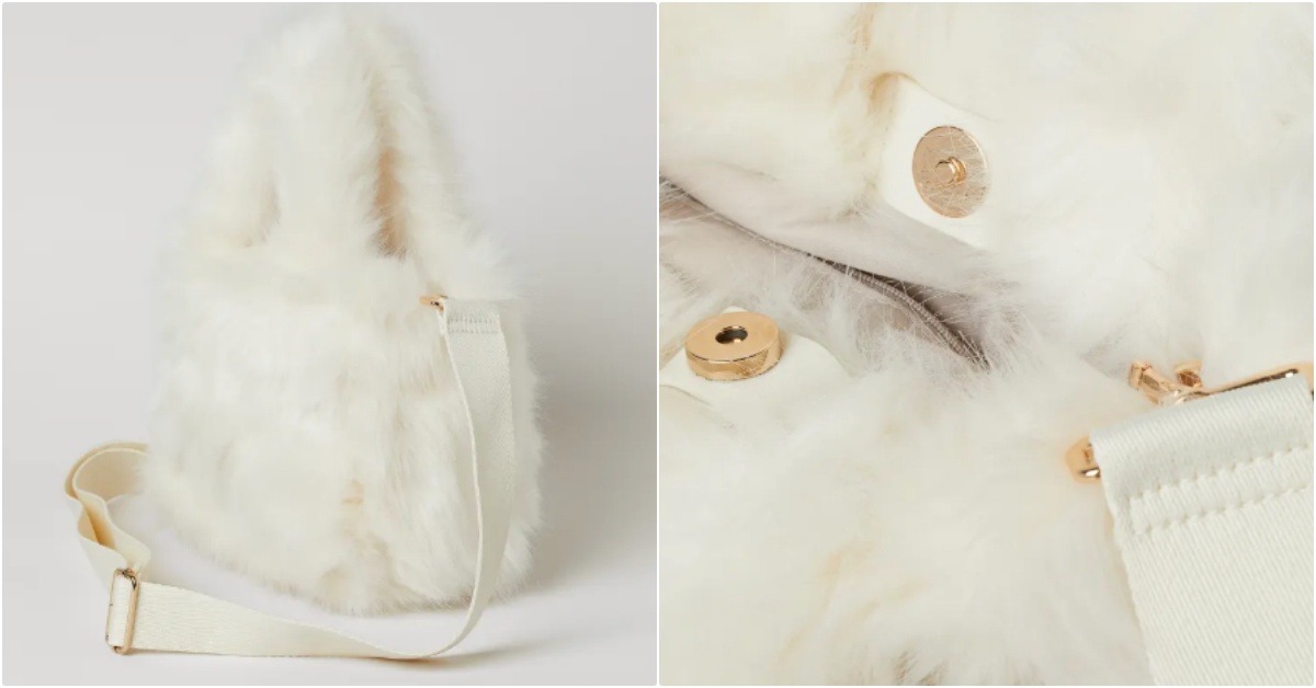 H&M這顆會不會太萌!!!雪白毛毛直接炸出包面、手提把,就像把萌萌小白兔帶著走一樣(融化),細節處也很用心,包口有雙提把和隱形磁扣、加上可調式平織布料背帶,方便切換不同背法,重點是…價錢也太甜了吧~