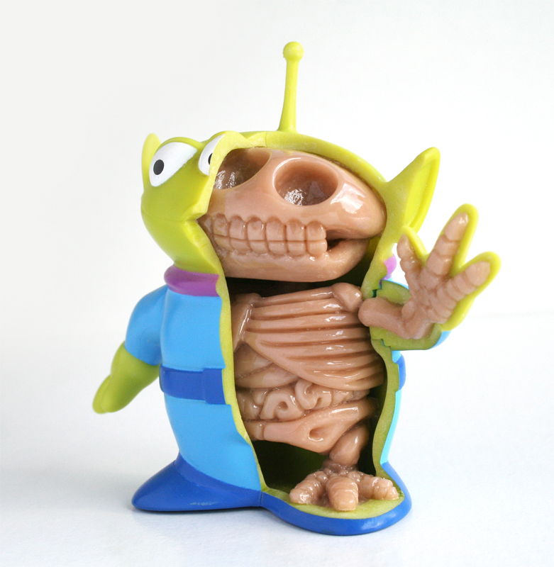 連米奇也逃不過被肢解的命運,好啦!妞編輯是一個臭俗辣,其實今天要介紹的是美國視覺藝術家Jason Freeny的作品。Jason是一位外科醫生(認真貌),只是他最喜歡解剖的是從小到大陪伴大家長大的玩具公仔,誰說模型只能擺在玩具櫃裡欣賞,公仔就是要拿來開腸破肚的啊!(邪惡笑)