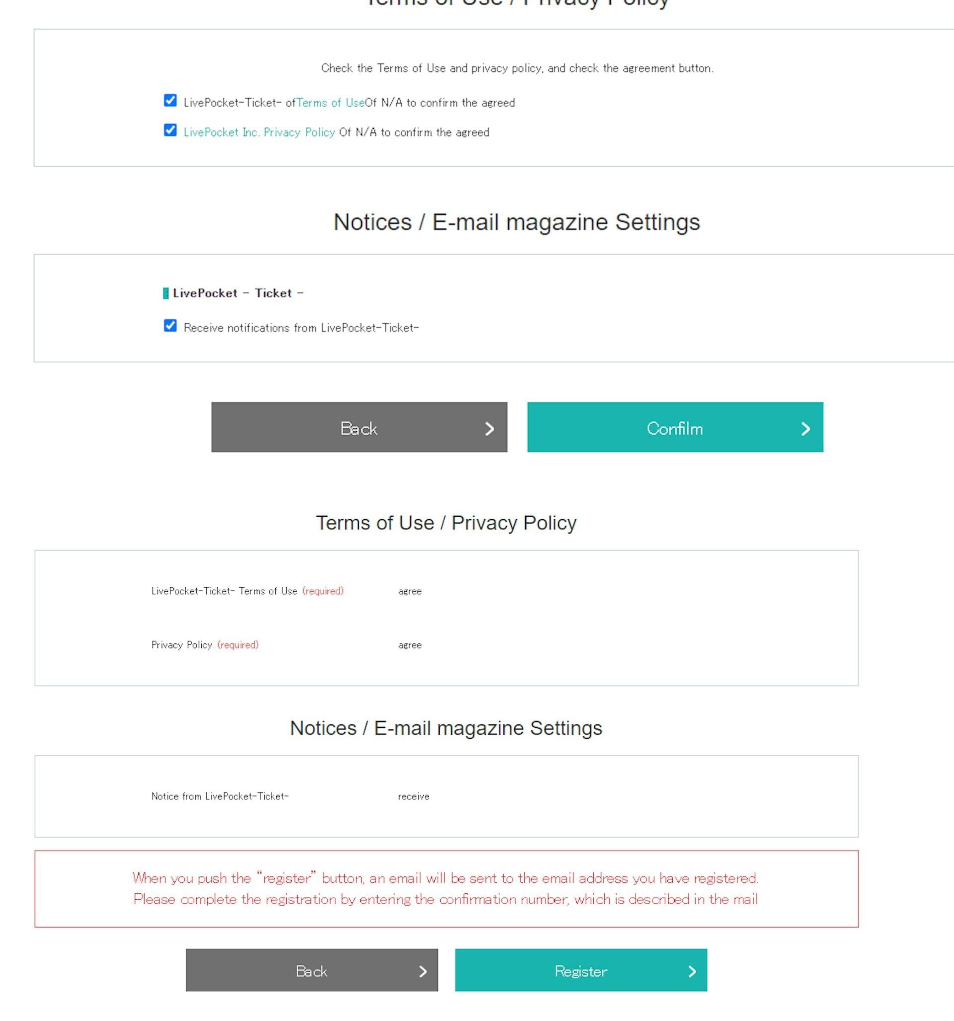 填寫個人資料後按「Confirm」確認,再按「Register」註冊就可以囉!