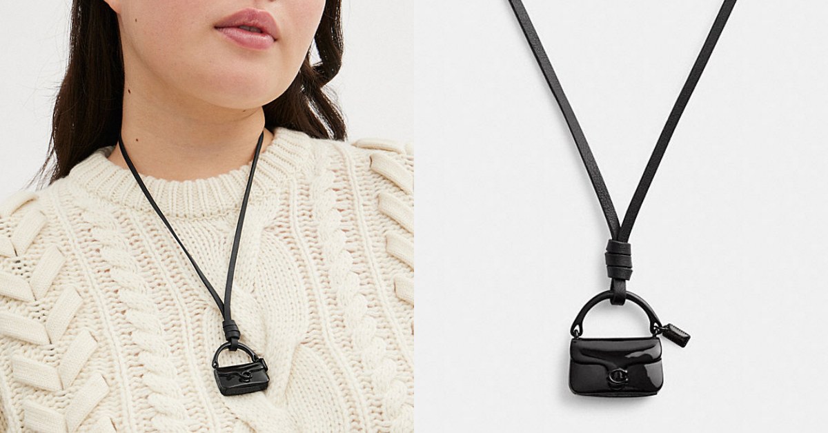 喜歡輕鬆風格的配件,可以參考COACH這款「手袋造型掛飾皮革項鍊」簡單又俐落的設計,酷黑色皮革項鍊綴有討喜的Tabby手袋迷你掛飾,還搭配可調整鬆緊的經典Signature滑扣,方便妞妞們配戴!