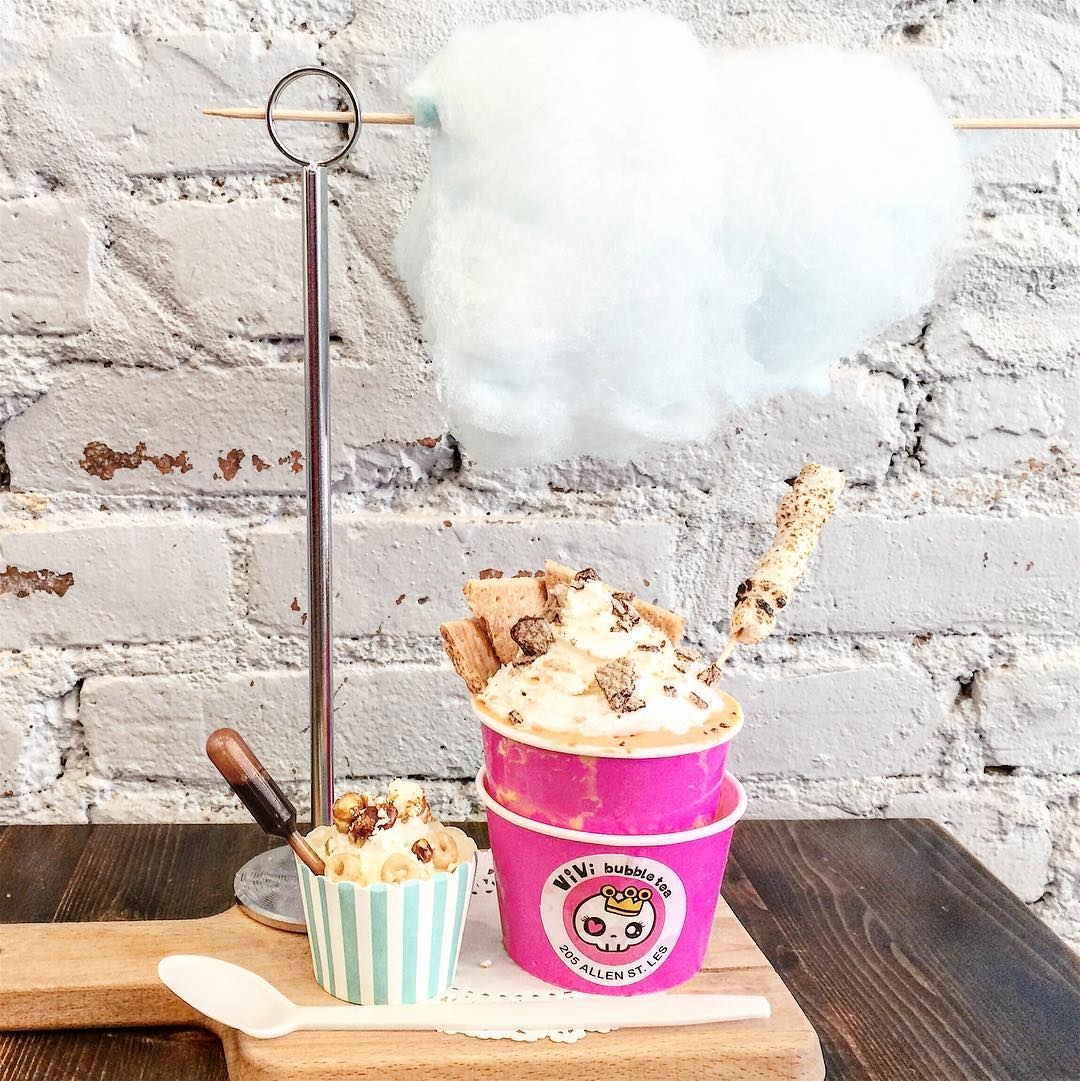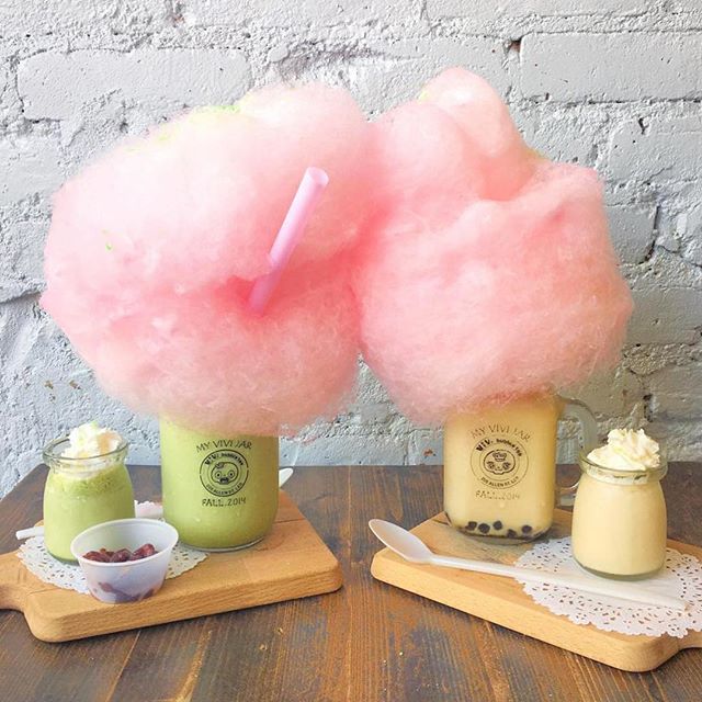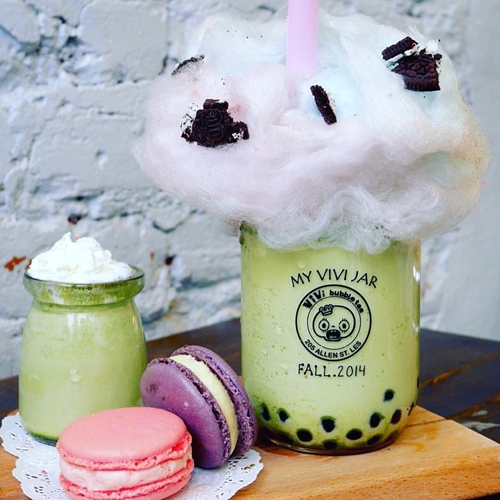 這家紐約的Vivi Bubble Tea LES其實是台灣人開的,在美國各地有許多的分店,除了把台灣國寶飲品-珍珠奶茶分享給美國人之外,還加上了超夢幻的創意,在珍奶上面放上飄飄然的棉花糖,少女們當然不能不買單的啊~