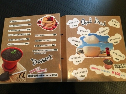 Alpha foods & drink是一間裝潢簡單,卻非常具有獨特風格的小店,菜單也是手作的簡樸風,非常適合喜歡人少不被打擾的旅人們,除了雲朵咖啡之外,左邊的盆栽點心也頗受歡迎!
