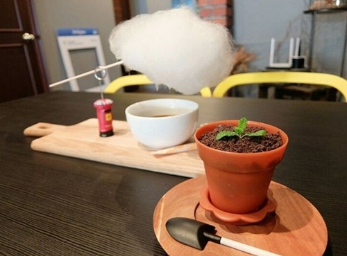 這個就是店裡最經典的組合,雲朵咖啡配上盆栽甜點,光是看著照片就感覺整個午後都輕鬆了起來!