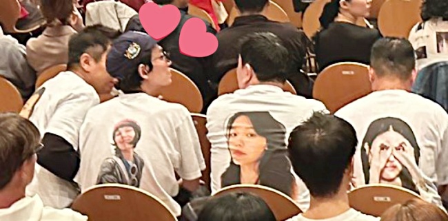 沒想到…男粉們「轉頭」露出真面目秒掀起軒然大波,坐在左邊數來第二位、戴著深色棒球帽的男子,居然就是秀英的男友「鄭敬淏」,他不但愛相隨到日本,還零偶包穿著印著女友照片的上衣進場支持,網友還搜出原版照片是去年秀英上傳IG的出遊照,疑似是「本人拍攝」的男友視角照,爆笑舉動馬上被全網瘋傳~