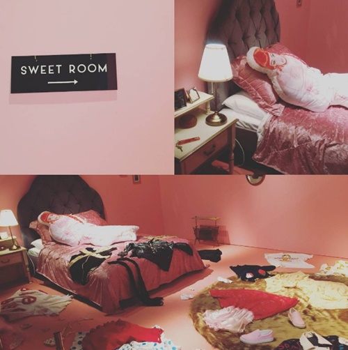 粉紅色調的Sweet Room展現了渡邊直美小女人的一面,雖然房間略顯雜亂,不過可別小看散落一地和床上的衣物喔,它們都來自於渡邊直美的服裝品牌「PUNYUS」,只要仔細一看,也許就能發現某件她曾經穿過的服裝!(咦,床上躺了一個渡邊直美抱枕嗎?)