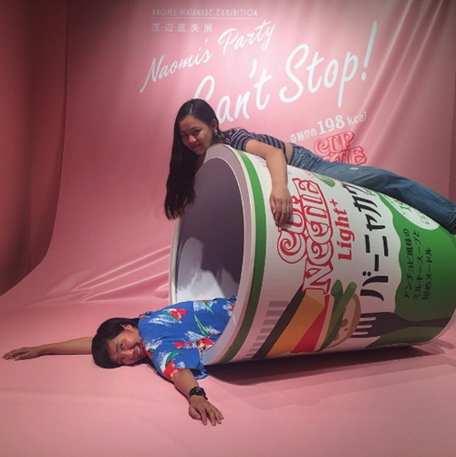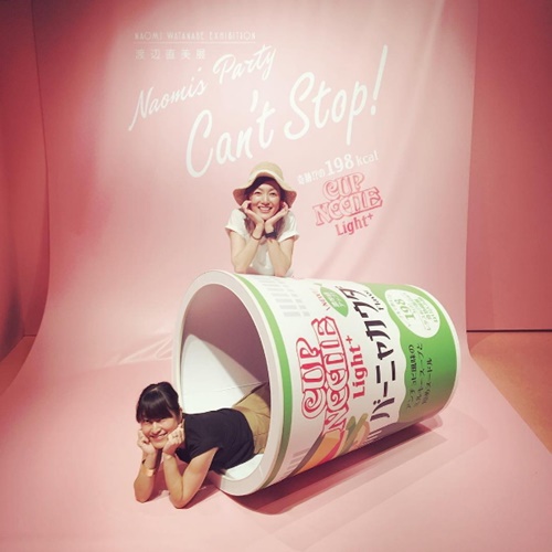 大家還記得渡邊直美代言泡麵廣告時,整個人躺進超大泡麵杯的模樣嗎?這次的展覽將廣告場景還原,讓我們也可以模仿這個經典的廣告,成為泡麵代言人喔!