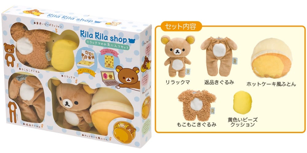 妞編輯個人很中意這盒拉拉熊套組,裡面有一隻拉拉熊、兩套熊裝(熊皮?!)枕頭、鬆餅睡袋,還附贈拍照背板,讓妞妞可以重現拉拉熊在家發懶or洗完布偶裝晾乾的樣子~