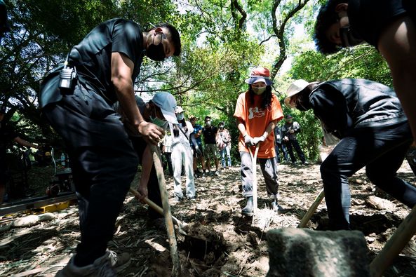 《周處除三害》以黑道老大「洪爺」的告別式為開場,華麗的葬禮排場出自葬儀社「單程旅行社」之手,利用波浪形的花藝來呈現澎湃的氣場,有趣的是今年熱播台劇《愛愛內含光》中賭場經理「阿嶽」奶奶的葬禮佈置,同樣也是出自單程旅行社團隊之手,根本是台劇/國片御用葬儀社!(笑)