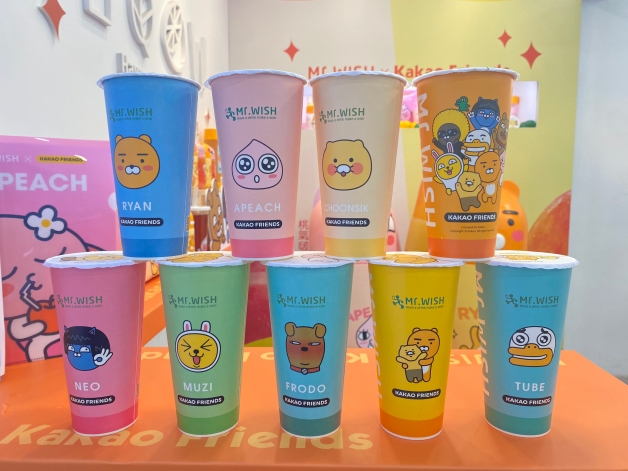 此次Mr.Wish聯名「Kakao Friends」,首推兩款限定飲品「芒果奶露」、「桃氣啵啵」,「芒果奶露」以萊恩造型罐,盛裝芒果肉+特製厚奶冰沙,果香與奶香完美融合,還有西米露增添口感,奶昔般滑順滋味超療癒!「桃氣啵啵」則以桃子造型罐,裝著超粉的蜜桃冰沙、蜜桃果丁,底層還有脆口的晶球啵啵,甜而不膩超適合夏天!