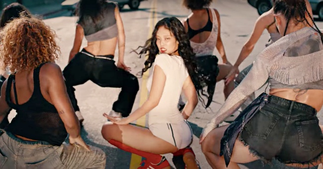 另外,〈Mantra〉MV中不只融入許多扭臀、摸胸、扭腰等性感動作,在副歌高潮處,穿著極短短褲的Jennie,還與舞者一起「M字腿蹲」,搭配迷濛眼神、吐舌咬唇的表情,大膽火辣的指數狂飆,直接刷新KPOP女團歷代尺度,網友紛紛表示:「太辣了!」「比想像中更洗腦」,也有部分網友不習慣Jennie的大轉變認為不適合。