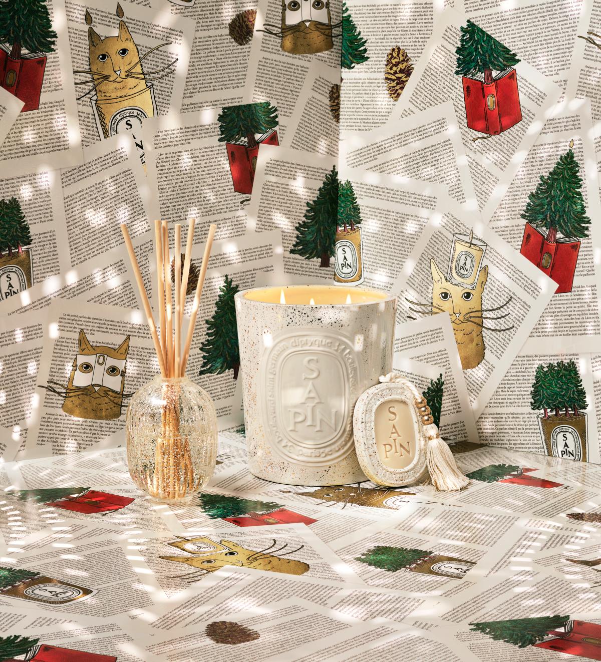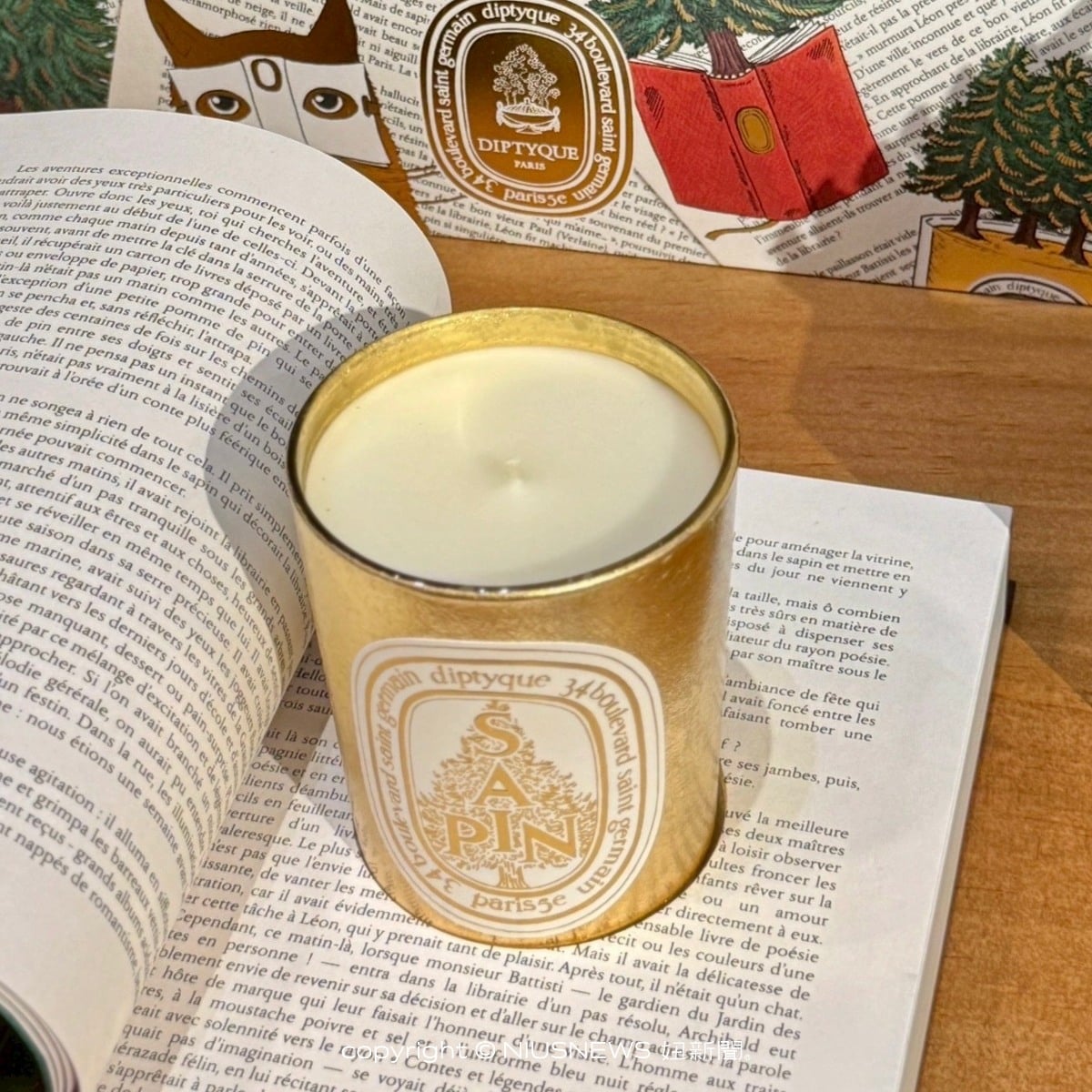 每年只會在聖誕節慶現身的冷杉香氛蠟燭,今年由工匠一筆筆手工施金,燭杯披上金箔新裝,瓶身上的白金標籤以 Diptyque 招牌的躍動字體搭配松樹插畫,就像施展了魔法,蠟燭有70g、190g及1500g不同的容量。