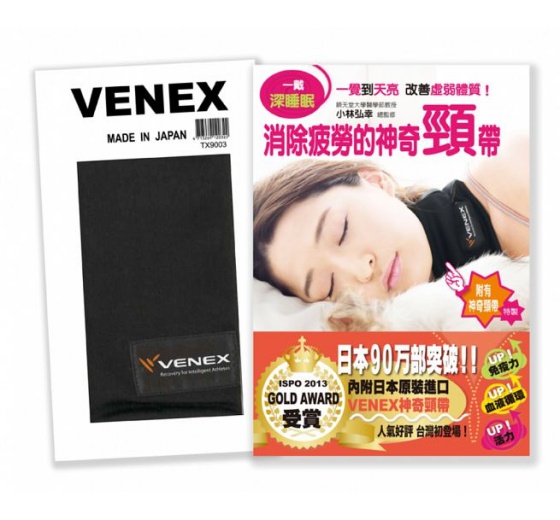 「你是否總是很疲倦,常常睡不好,無法一覺到天亮? 是否會有手腳冰冷、肩頸痠痛、眼睛疲勞、容易水腫的困擾? 現在,只要戴上VENEX神奇頸帶,一切就沒問題! 神奇頸帶的PHT材質含有奈米鉑和天然礦石成分, 能產生微弱電磁波及遠紅外線,活絡副交感神經, 讓你一覺到天亮,醒來之後神清氣爽!」