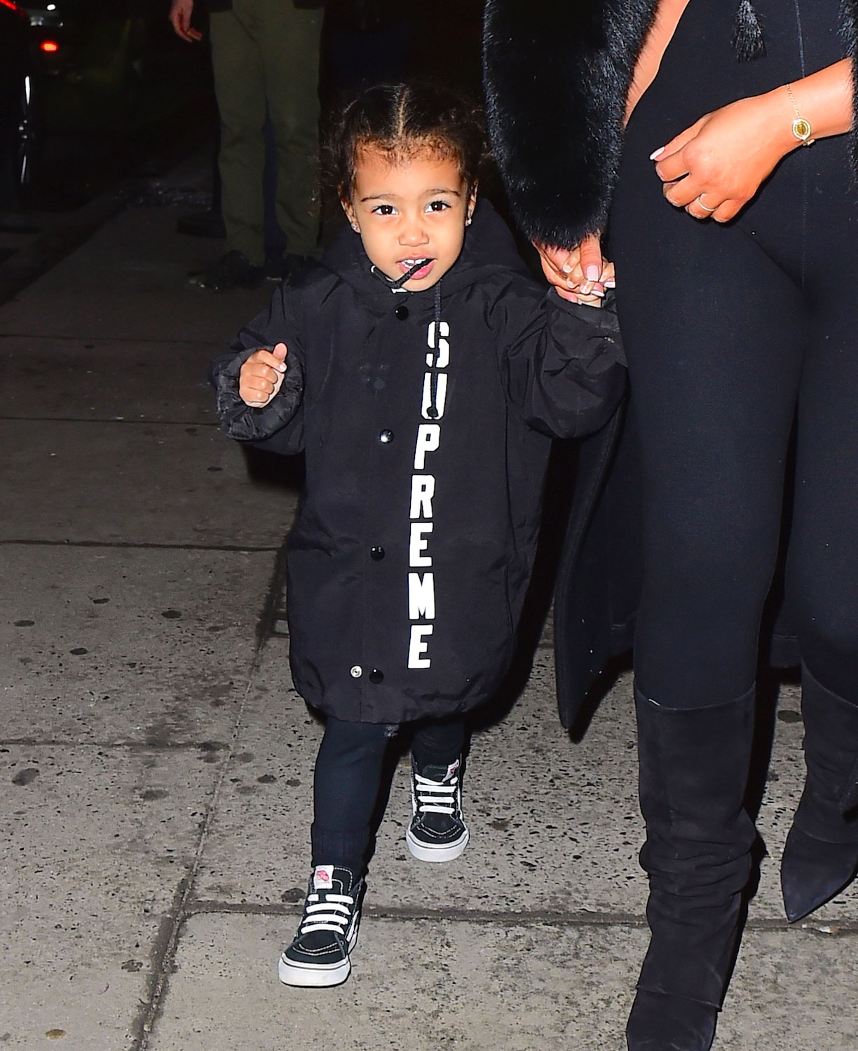 由於老爸是全世界最有名的嘻哈饒舌歌手,身為他的掌上明珠,嘻哈裝扮當然是必備的!跟爸爸一樣常穿全黑的西北,但也不忘流行的字母元素。