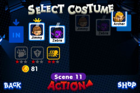 在遊戲裡,Jimmy你可以隨著遊戲難度的不同,按下右上角的角色大頭貼來切換不同的特殊服裝,好發揮最好的戰鬥力!