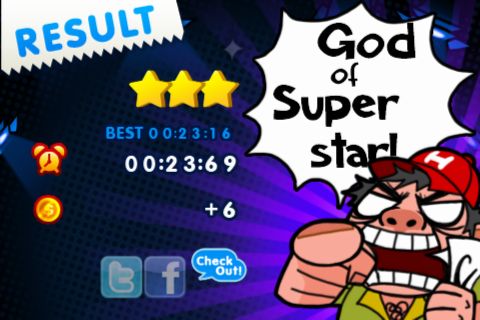 在Setting當中,當然可以設定是否音樂與音效開啟,特別要說的是還可以翻轉畫面的水平,這樣若是你使用耳機的時候,玩遊戲時手部的動作就不會被耳機給卡住了,滿貼心的。