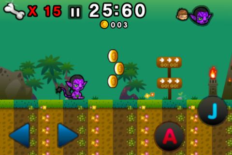 遊戲中,Jimmy你可以透過跳躍或是攻擊的方式,打倒面前的小怪獸或是對手(跳躍過對手並不會幫助我們賺到金幣,但如果攻擊成功就有金幣可拿囉)!