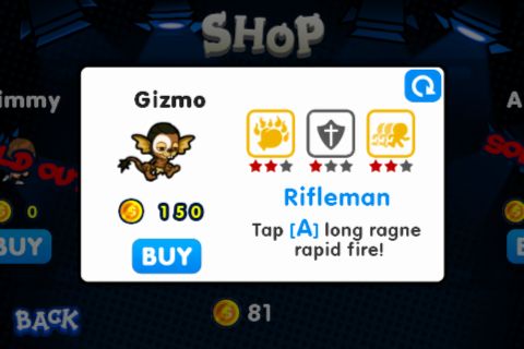 若是不清楚每個特殊服裝的不同特殊能力的話,在選擇場景時,你就可以進入Shop當中,點擊Buy來觀看每個服裝的攻擊力、防禦力以及移動速度!