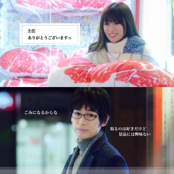 在這裡妞編輯要先將大家的記憶拉回《拜託請愛我》第二集,愛肉成痴的美和子看見夾娃娃機裡有沙朗牛抱枕,而擁有「大型起重機執照」的主任帥氣地將牛肉夾起來給美和子。(這設定讓妞編輯笑了XD)