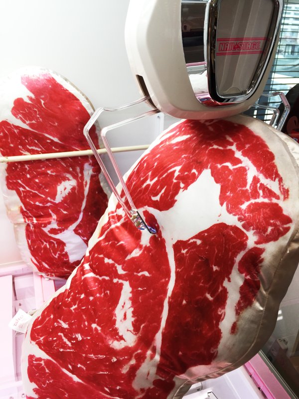 沙朗牛排抱枕大小約100×50×15公分,售價日幣7,020元(稅入),如果真心想擁有的大家可以上網搶購,目前預計是五月下旬才會開始發貨喔!除了官網,大家去日本的時候有不少地區有肉肉抱枕夾娃娃機,路過的時候不妨試個手氣玩玩看吧!
