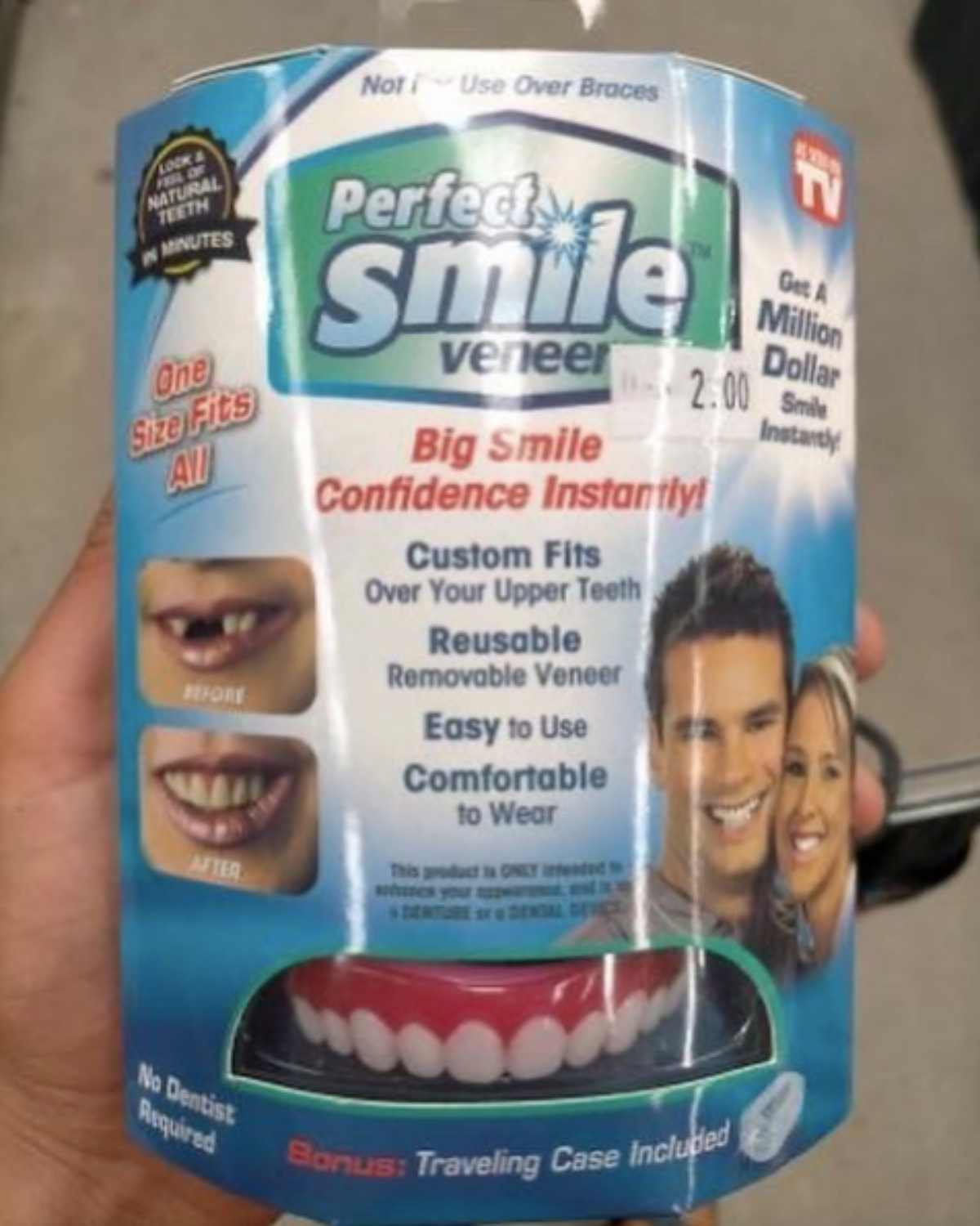 免照光、免貼片,想當一個有完美微笑的美齒寶寶就是這麼簡單!直接戴上這一排美齒假牙就OK!希望妞妞們可以仔細看下旁邊的配圖,因為實在太荒唐了,完全跟實品不符,這東西是可以生產是在開玩笑嗎?