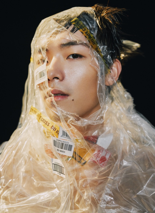 今年周子娛樂的新人演員Rosen更挑戰直接把層層塑膠包裝套在身上,只露出半邊臉還是非常時尚好看!拍攝下來的形象照給人一種想要逃離突破的感覺!
