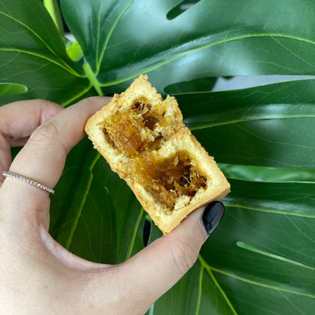 「以天然水果細心烘培成真實美味!」微熱山丘的鳳梨酥出自於一個做了將近五十年糕餅的老師傅反璞歸真之作,嚴選在田間自然生長、未經馴服的「台灣土產鳳梨」,經過削切和熬煮後將燦爛的陽光封存成最天然而且美味的餡料,酥皮的蛋則是使用每一顆都找得到生產履歷健康飼養的鮮力蛋®,並加入天然奶油和日本麵粉所揉製而成,絕對沒有任何人工合成的添加,帶點馥郁的奶油香氣,口感獨特且濃郁,內餡鳳梨酸甜果香更是可口,這就是所謂的「陽光烘熟的美點」!