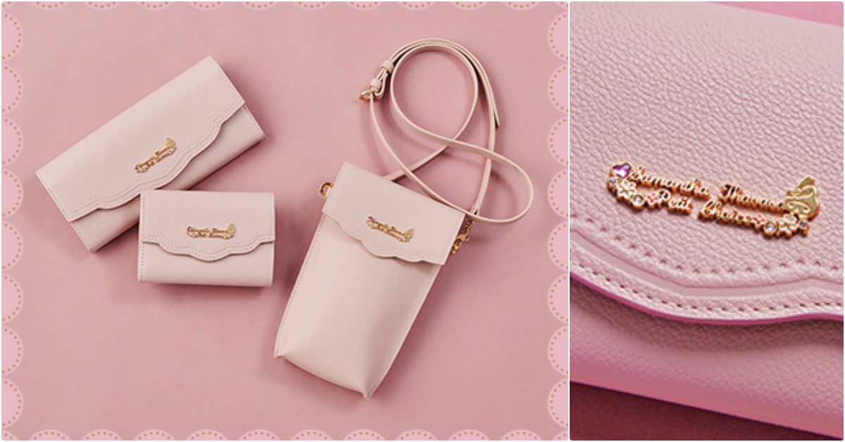 聯名包的設計還沿用到長皮夾、短皮夾以及手機袋上,翻蓋處都有優雅的荷葉邊花紋,那美樂蒂、酷洛米在哪裡呢?原來變身成金色大頭裝飾偷偷藏在LOGO旁,低調精緻的設計,通緝ing的反派酷洛米也不怕被抓到啦(笑)!