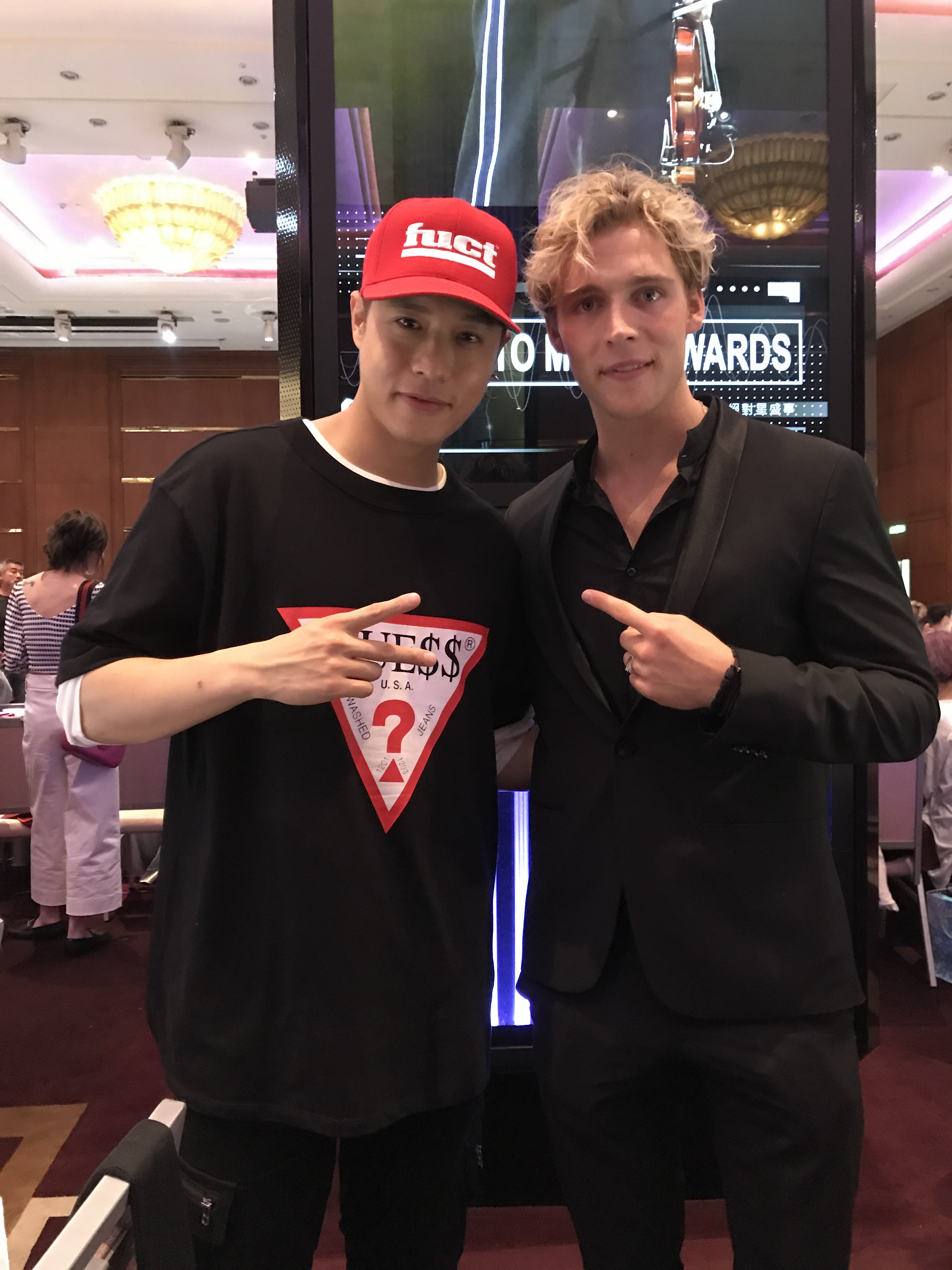 在Hit FM頒獎典禮的後台,克里斯多福也和許多台灣歌手見面、交流。