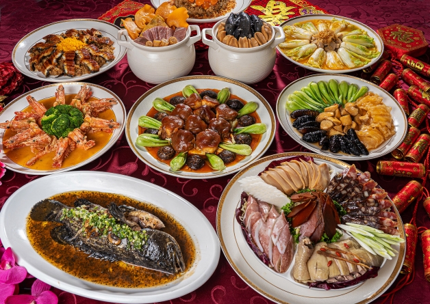 義大皇家酒店「皇家嚴選開運年菜」,包括經典粵式燒臘「錦繡聚拼盤」、山珍海味「閩南燉寶佛跳牆」、餐廳人氣居高不墜的「掛爐烤鴨」、象徵年年有餘的「西湖醋溜石斑魚」、「金針菇干貝長生菜」、「紅豆芋泥鬆糕」、「港式臘味蒸米糕」、「鮮果富貴蝦球」、「水晶貴妃放山雞」、「紅燒蹄膀」、「照燒爐烤豬肋排」、「避風塘炒活龍蝦(1隻)和「紅酒燉安格斯牛排(10片)」等多達13道美味菜色供消費者自由搭選!